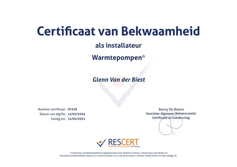 Gecertificeerd installateur van warmtepompen